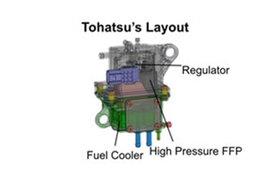 De Vapor Separator Tank (VST) is ontworpen om de hogedrukbrandstoftoevoerpomp, -regelaar en brandstofkoeler in één onderdeel te integreren.