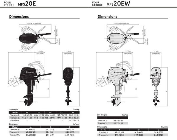 - EPTL: E: elektrische start, P: afstandsbediening, T: power tilt, L: Langstaart.